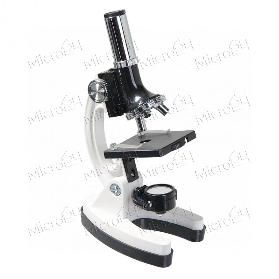 Детский оптический прибор с увеличением в 100-900 крат. На корпусе расположены зеркало и светодиодная лампа, которая автоматически включается при повороте зеркальной поверхности. Для детального изучения объекта исследования предусмотрена диафрагма и четыре фильтра. Устройство имеет основание из металла и подвижный тубус с окуляром и объективом. Питается микроскоп от 2 батареек формата АА. В комплекте есть специальный нож для вскрытия препаратов, компоненты для проведения опытов, емкости для выращивания живых микроорганизмов.